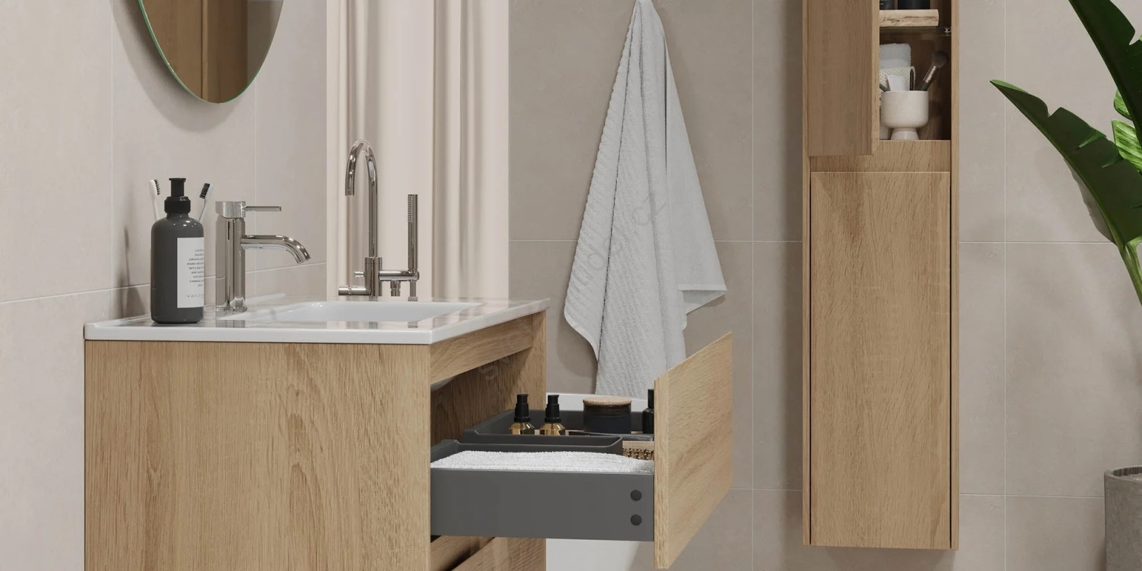 • Nabízí rozsáhlý úložný prostor pro koupelnové potřeby a také vyhrazený prostor pro potrubí a sifon.