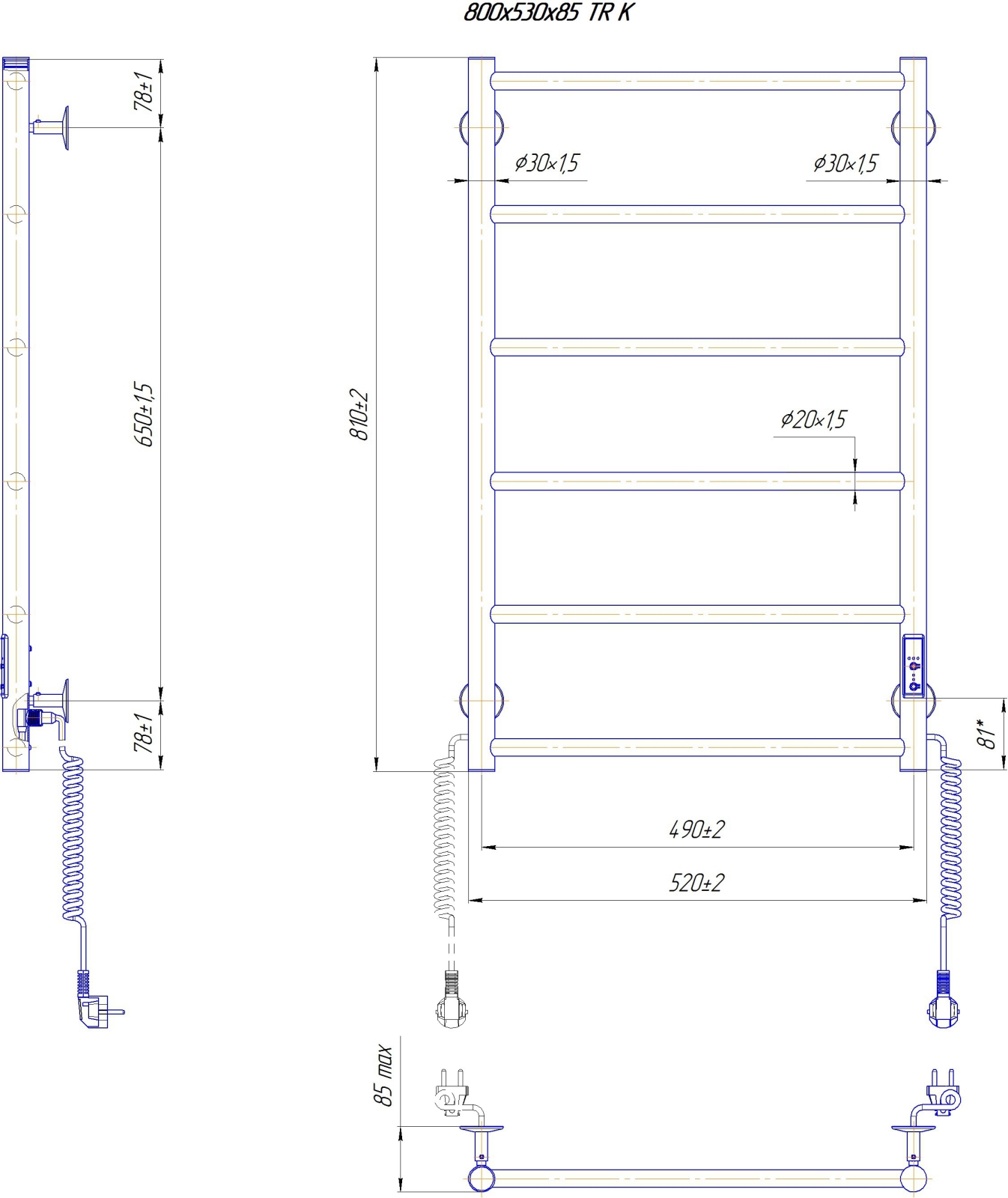 Koupelnový žebříkový radiátor CLASSIC 110W/230V 80x53 cm nerez/lesklý chrom pravá