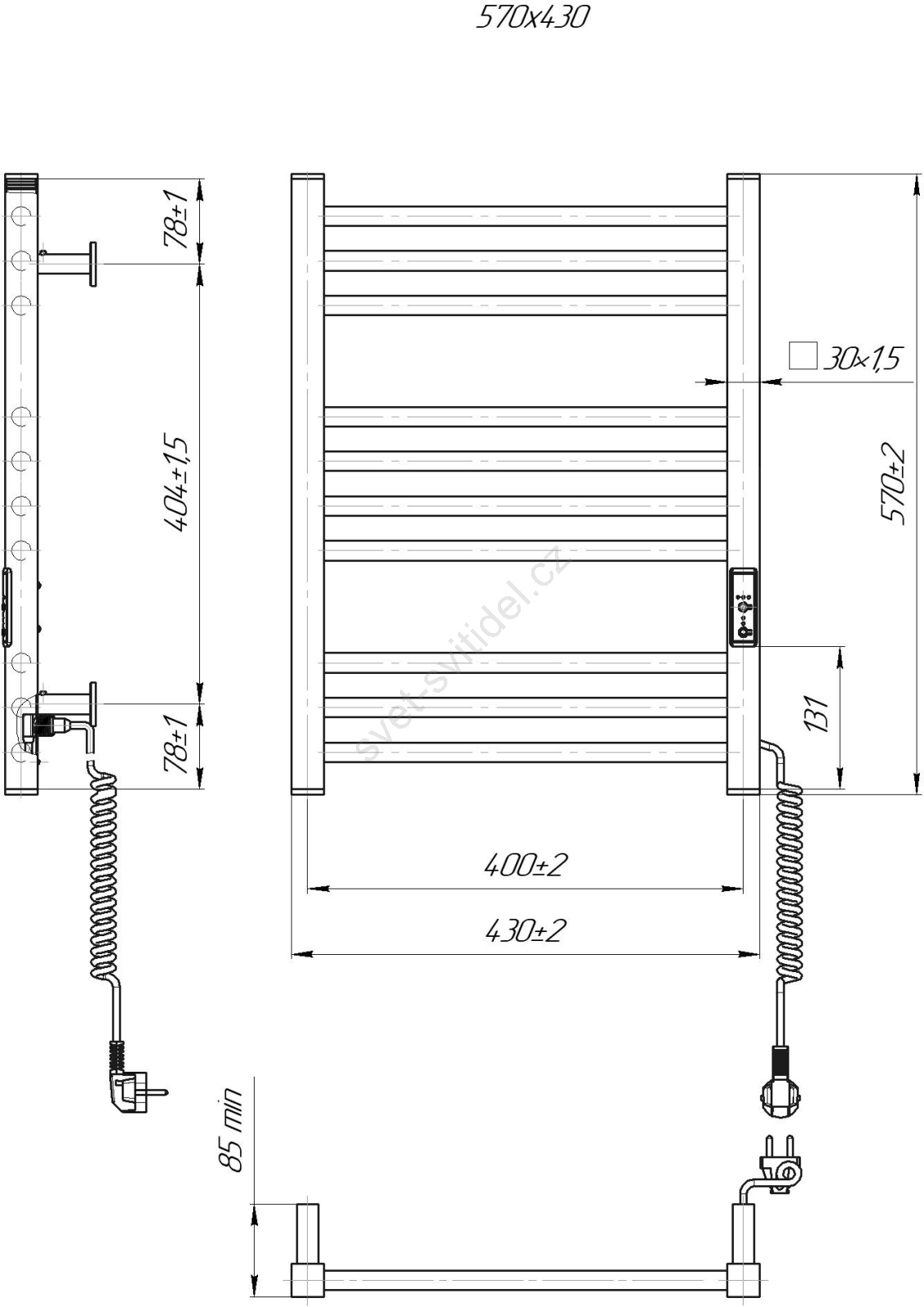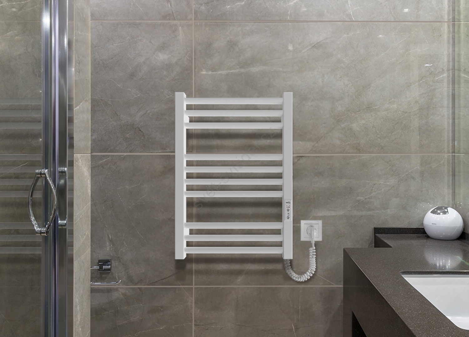 Koupelnový žebříkový radiátor HF DERBY 100W/230V 57x43 cm bílá pravá