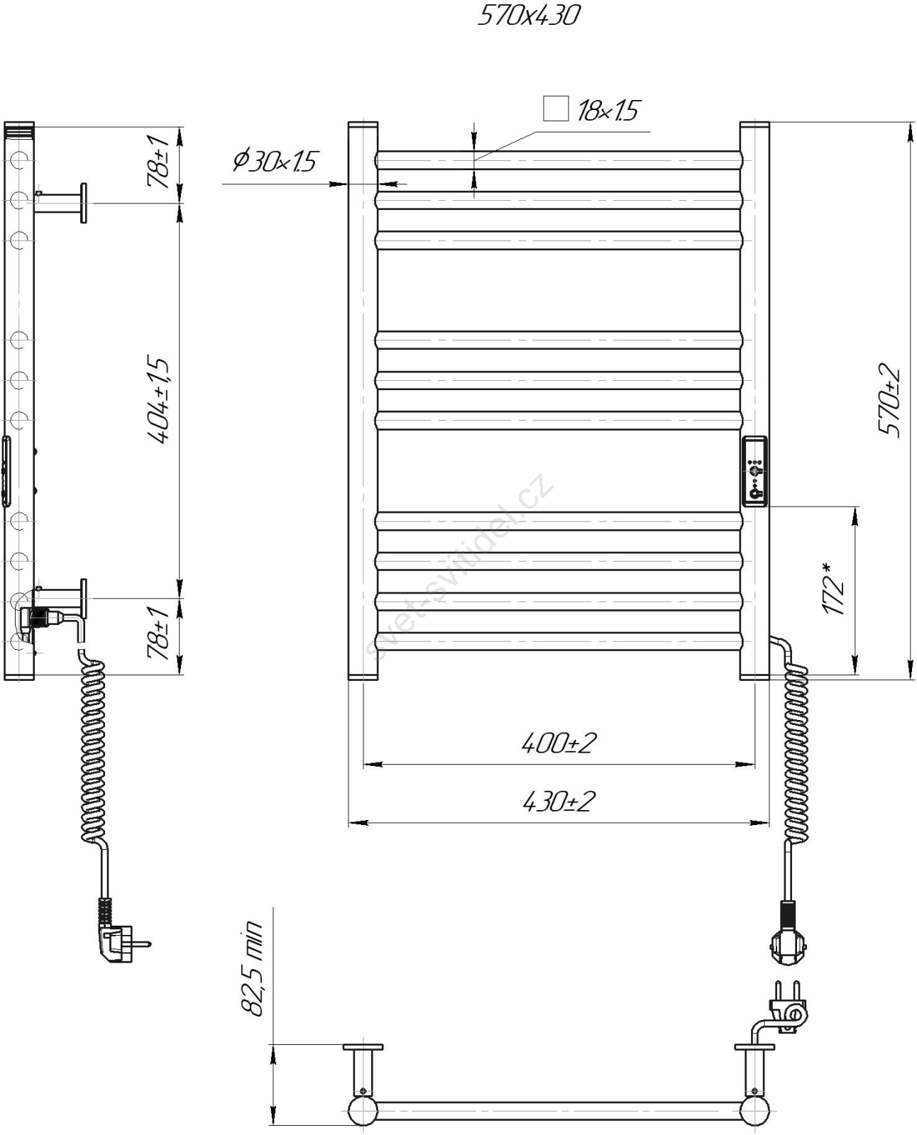 Koupelnový žebříkový radiátor HF GREENWICH 100W/230V 57x43 cm černá pravá kulatý