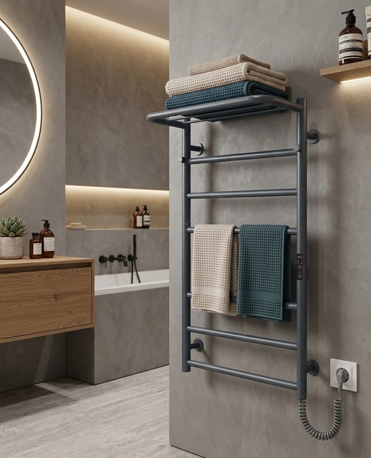 Koupelnový žebříkový radiátor HOME 95W/230V 77x53 cm nerez/antracit pravá