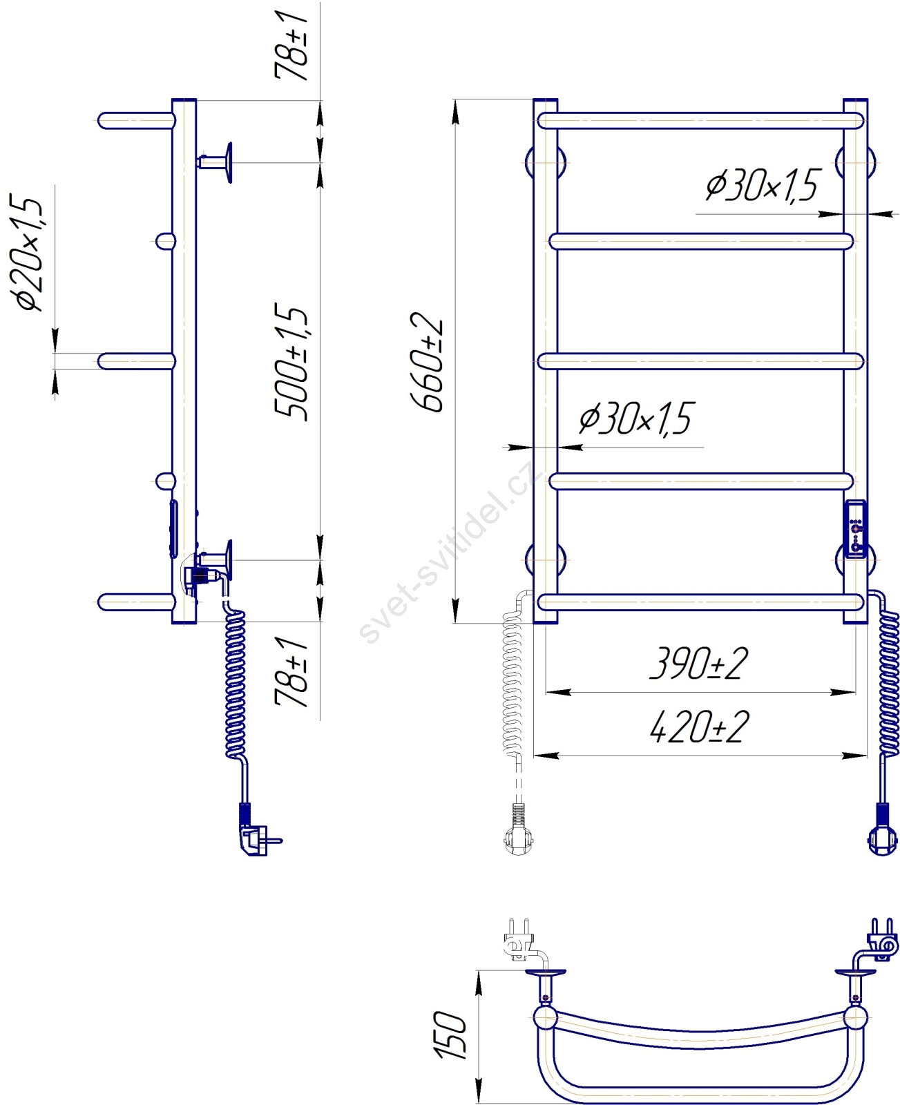 • Elektricky vytápěný koupelnový žebříkový radiátor, vhodný pro sušení ručníků a přitápění koupelny.