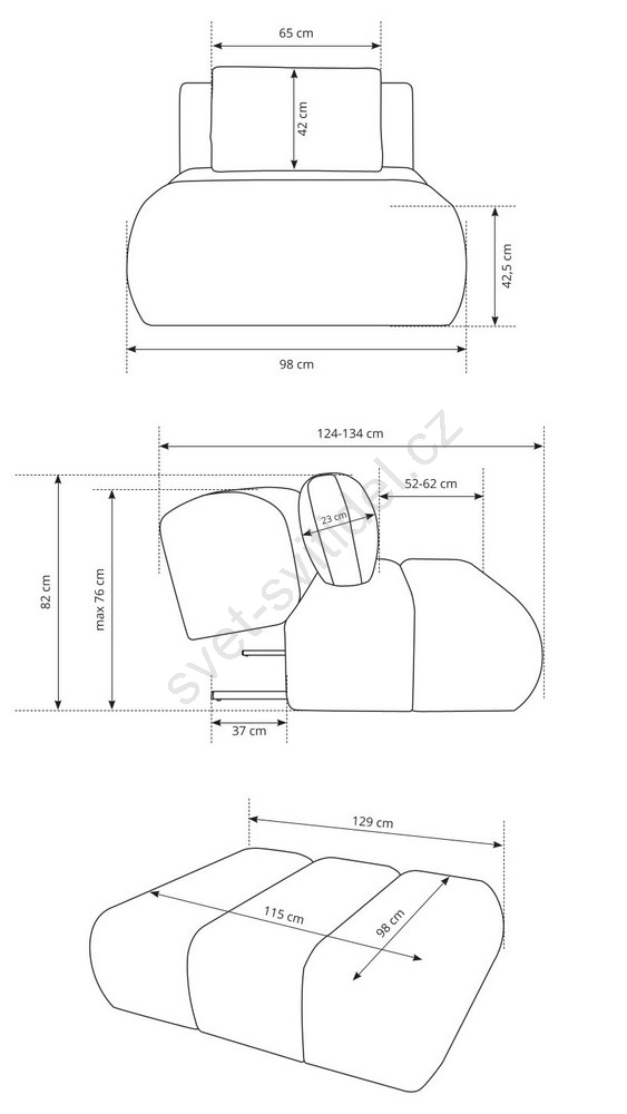 • Pohodlná výška sedáku 42,5 cm umožňuje snadné sezení i vstávání.