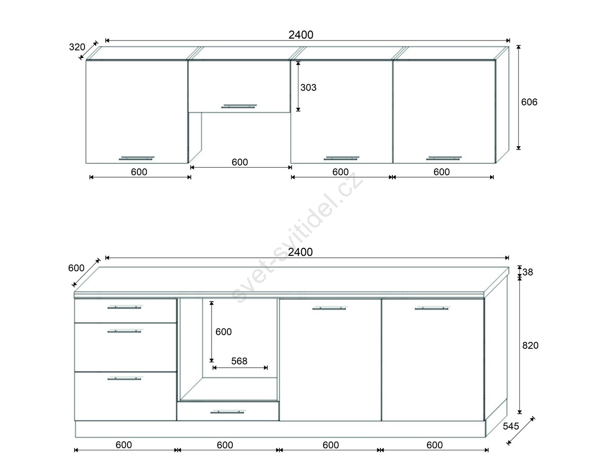 • Uspořádání skříněk je modulární, kuchyni si můžete upravit podle svých vlastních představ.