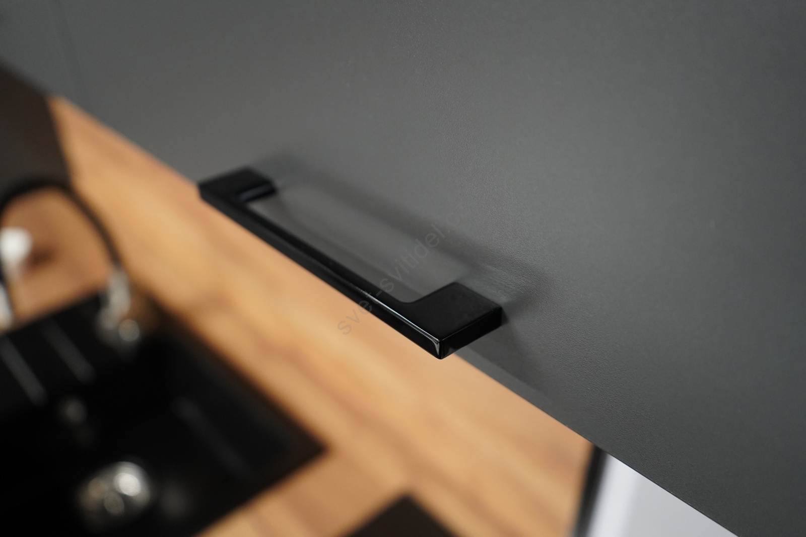 • Horní skříňky jsou opatřeny plynovými písty, v zásuvkách jsou zabudovány kvalitní zapouzdřené kovové pojezdy.