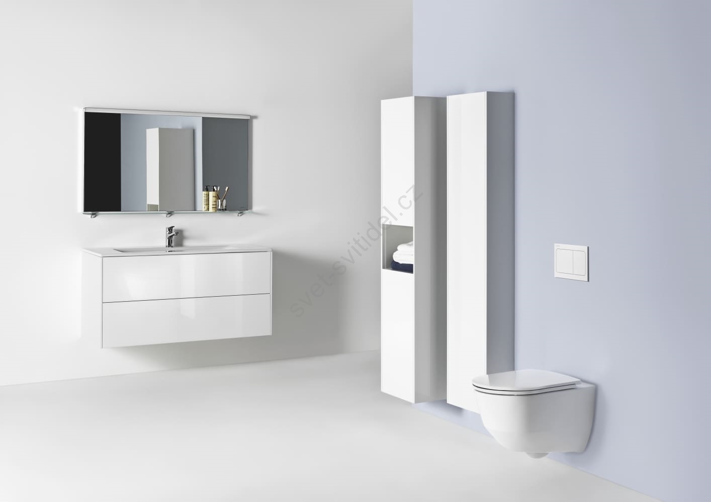 • Závěsná toaleta bez tradičního oplachového kruhu.