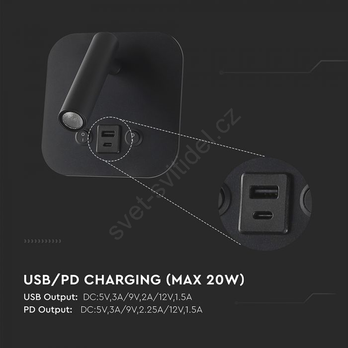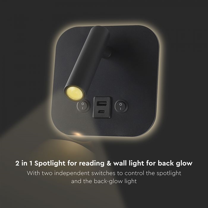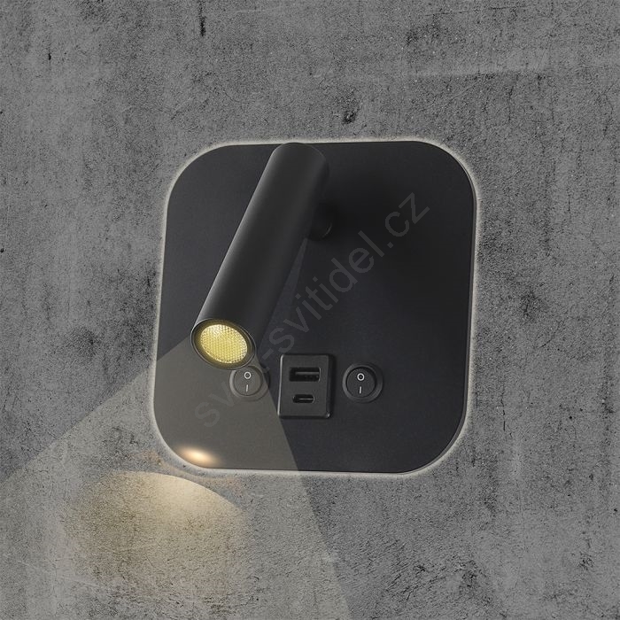 LED Nástěnné bodové svítidlo s USB portem LED/8W/230V 3000K černá