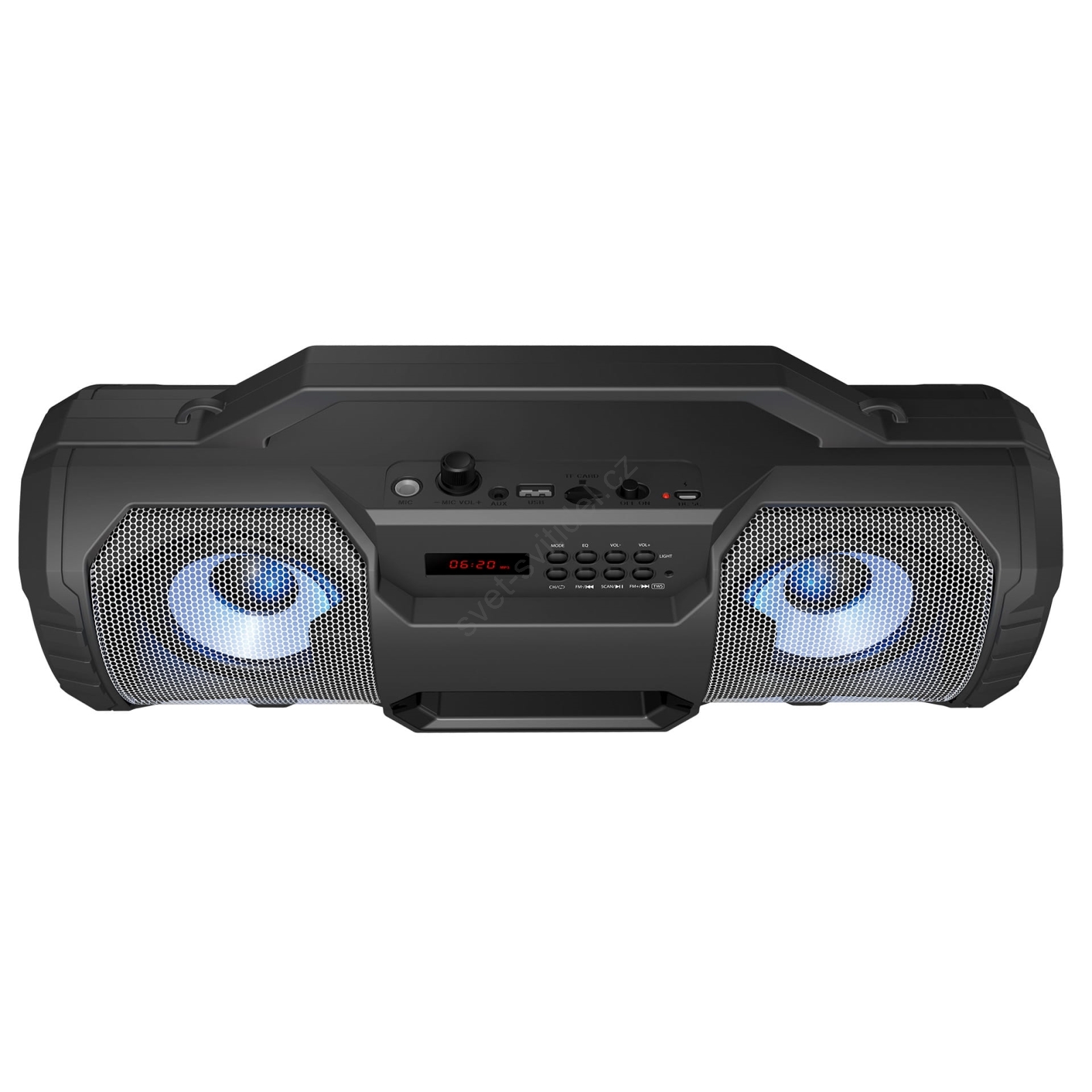• Praktické prvky: Vstup pro mikrofon (ideální pro karaoke), přehledný ovládací panel a moderní nabíjení přes USB-C.
