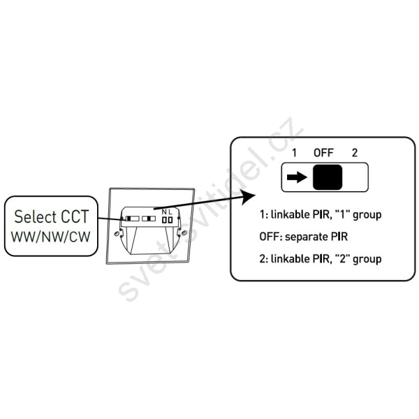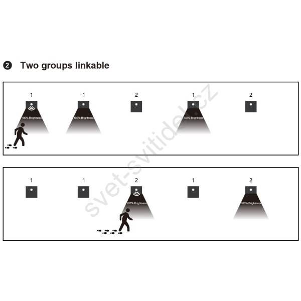 • MÓD 2 - spínání skupiny svítidel se stejně nastaveným módem.