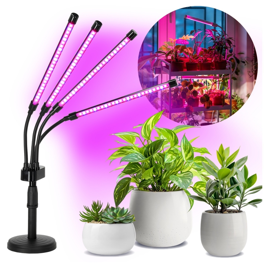 LED Stmívatelná flexibilní stolní lampa pro pěstování rostlin VITARO 4xLED/10W/230V černá