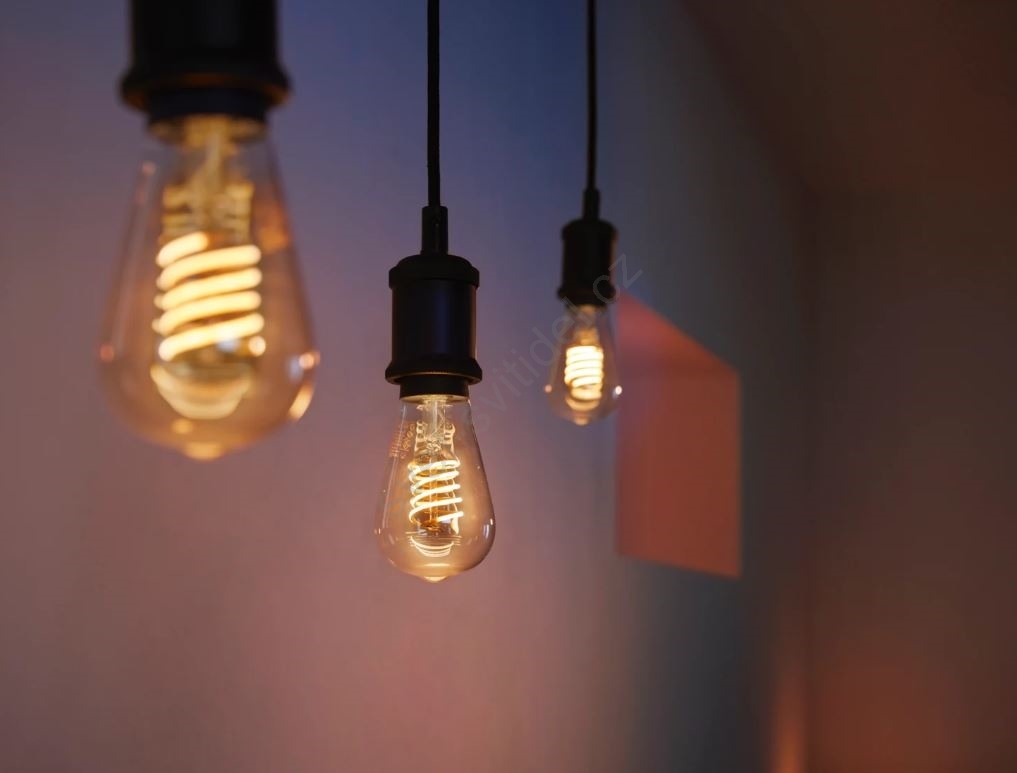 • Samostatná LED stmívatelná žárovka Philips Hue FILAMENT s paticí E27.