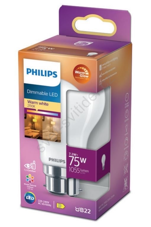 • LED Stmívatelná žárovka Philips Warm Glow A60 B22/7,2W/230V 2200-2700K CRI 90