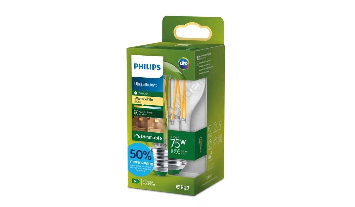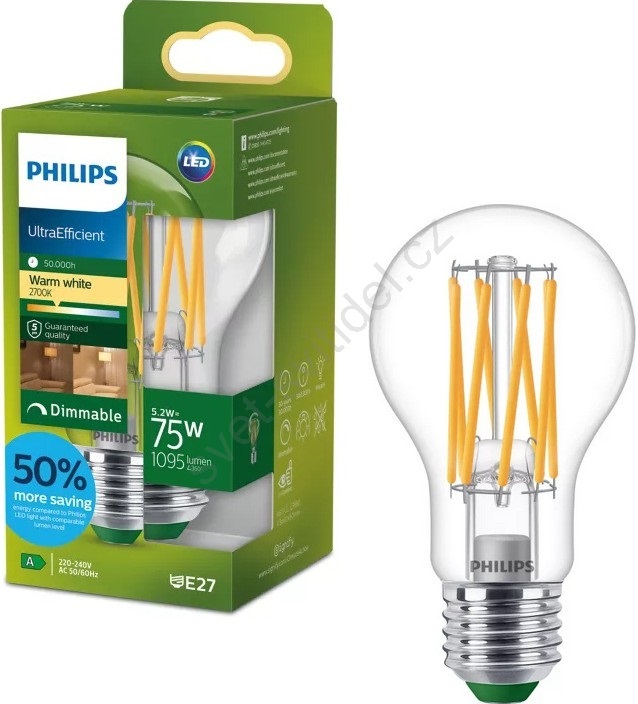 LED Stmívatelná žárovka ULTRAEFFICIENT VINTAGE Philips A60 E27/5,2W/230V 2700K