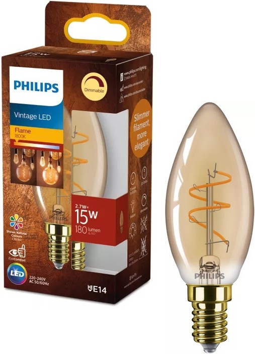 LED Stmívatelná žárovka VINTAGE Philips B35 E14/2,7W/230V 1800K
