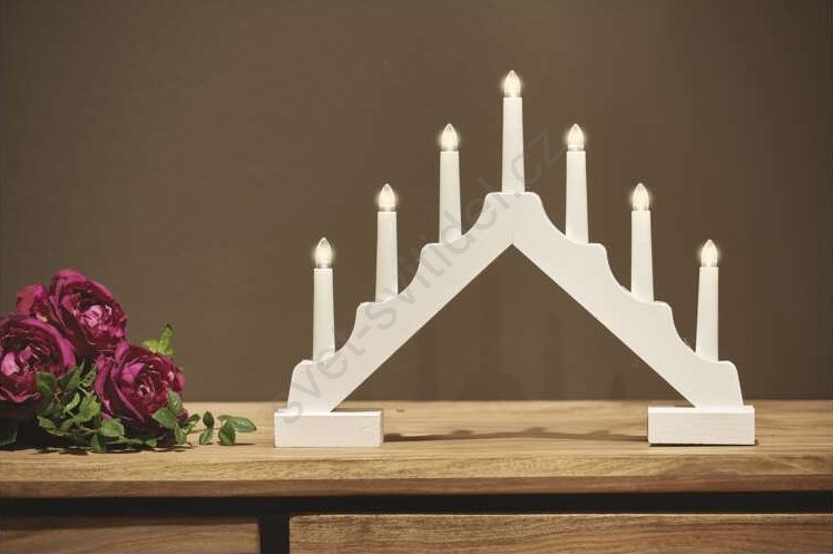 • Dřevěný vánoční svícen se 7 LED žárovičkami.