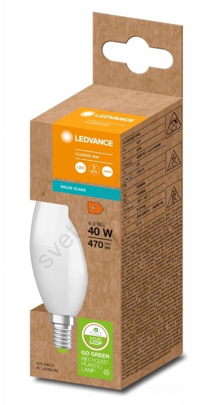 • LED Žárovka z recyklovaného plastu B40 E14/4,9W/230V 2700K - Ledvance