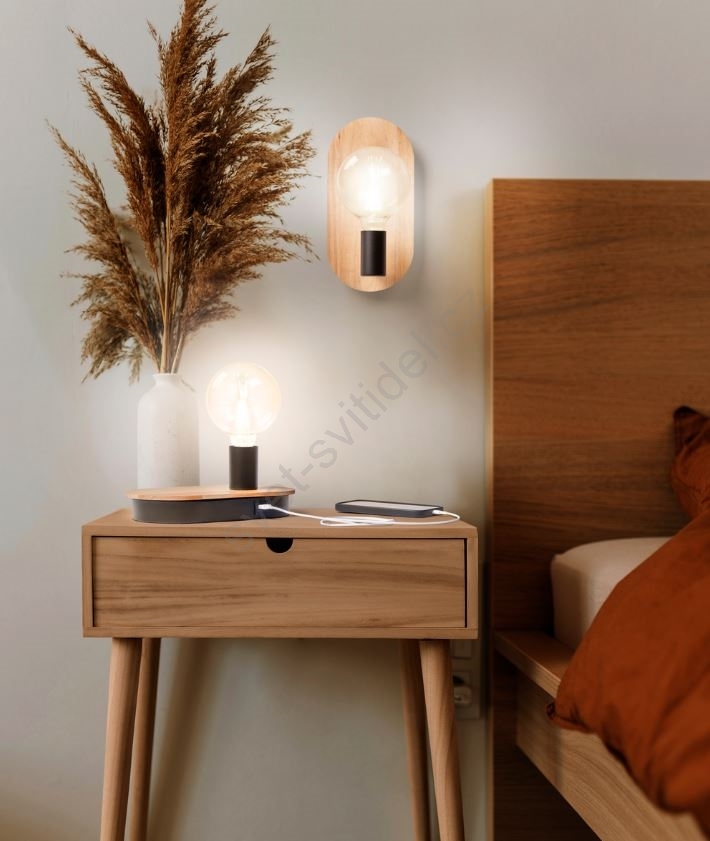 Ledvance - Dotyková stolní lampa s USB konektorem DECOR WOOD 1xE27/8W/230V gumovník