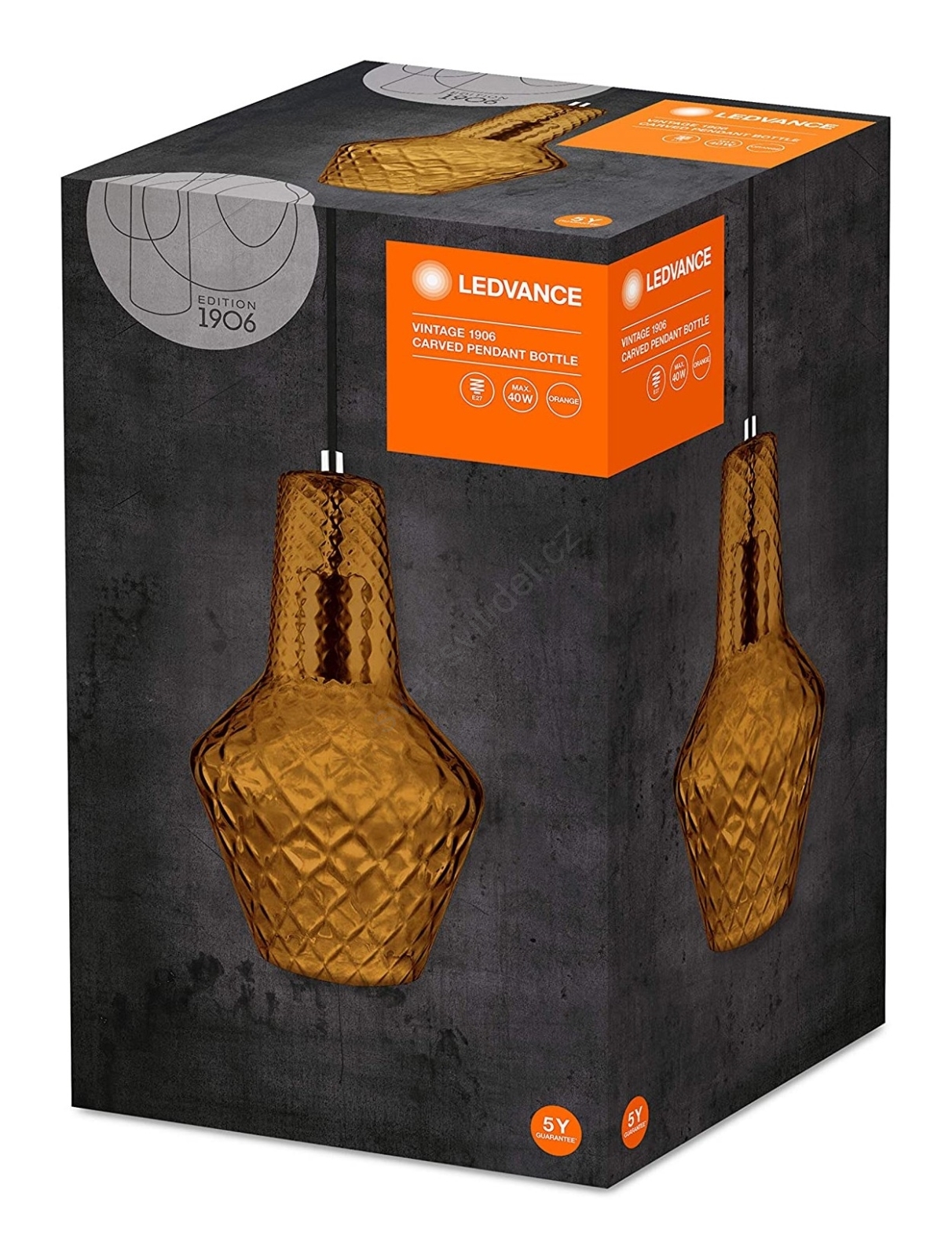 Ledvance - Lustr na lanku BOTTLE 1xE27/40W/230V oranžová charakterizuje pěkný design a funkční provedení. Do svítidla je určena žárovka s paticí E27. Zde si můžete koupit další žárovky za výhodnou cenu. Získáte tak zajímavý doplněk do svého domova.
