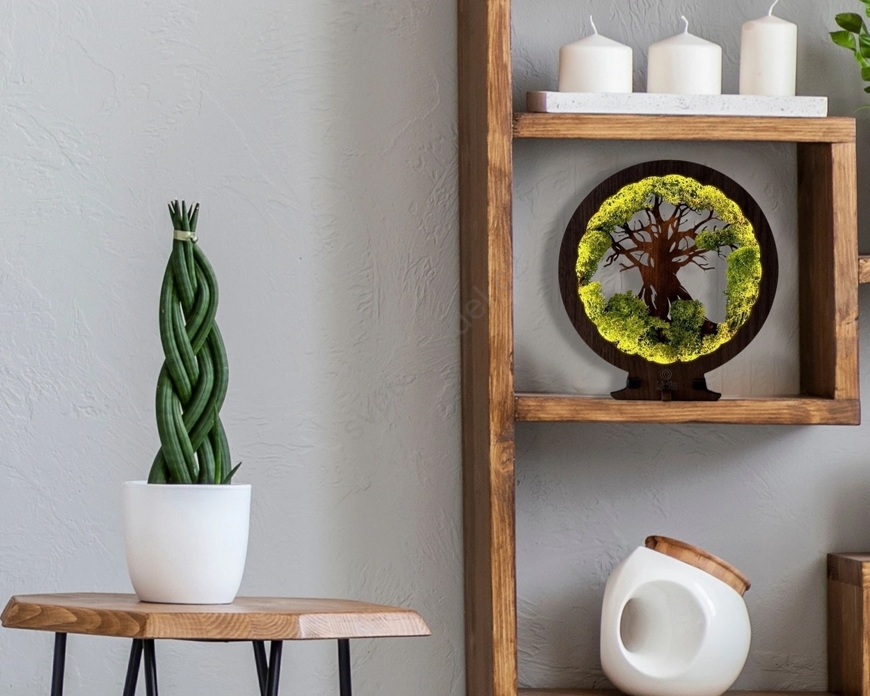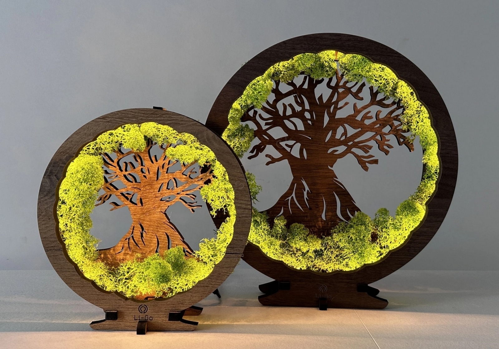 Li-Go 23631/DUB2 - LED Stmívatelná stolní dekorace LED/12W/230V 30x31 cm dub/Mech a strom