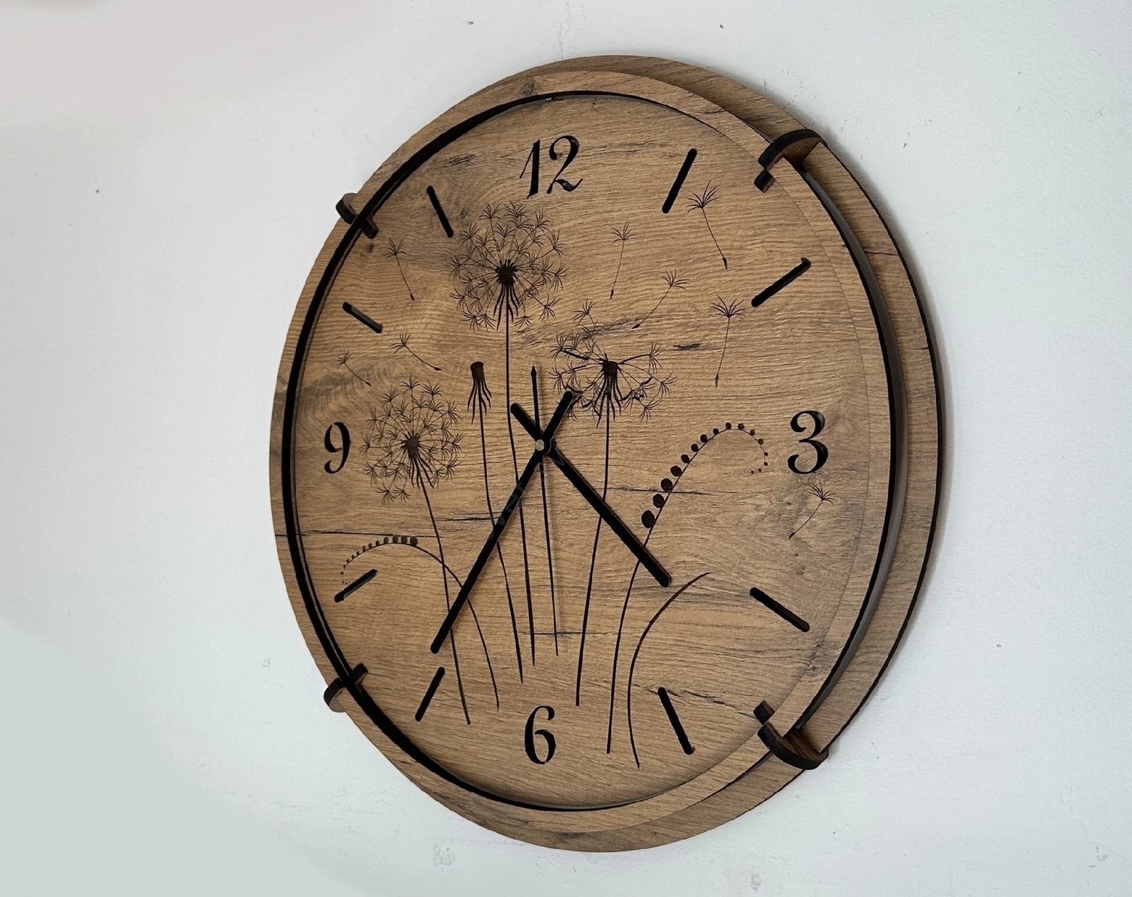 • Dřevěné hodiny s jedinečným vygravírovaným motivem.