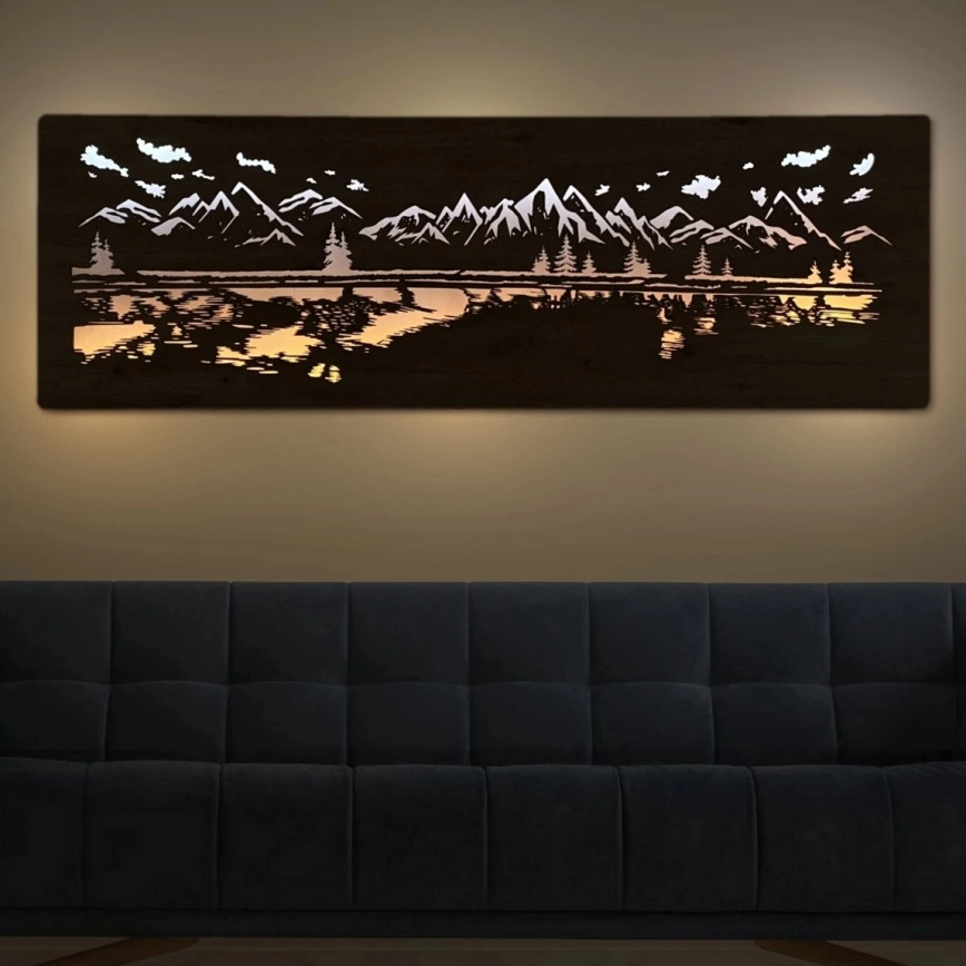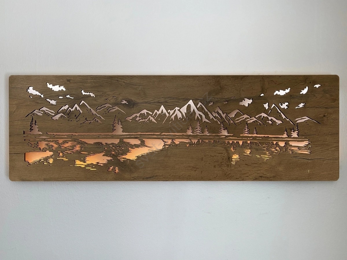 Li-Go 4778/A/4 - LED Stmívatelná nástěnná dekorace LED/10W/5V 30000 mAh 120x40 cm dub/Jezero