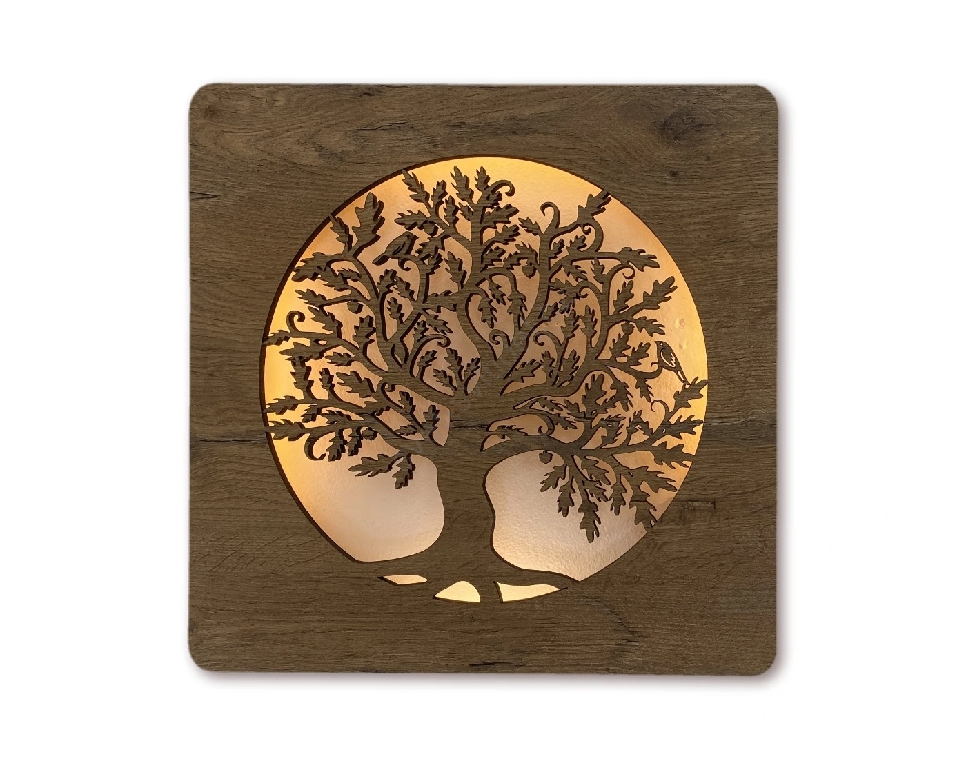 Li-Go 5275/DUB2 - LED Stmívatelná nástěnná dekorace LED/10W/5V 20000 mAh 42x42 cm dub/Dub v kruhu + dálkové ovládání