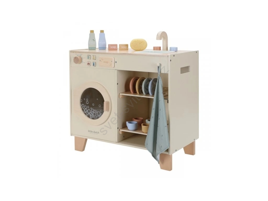 • Stylový dřevěný set pračky a dřezu od Little Dutch je ideální pro děti, které si rády hrají na domácnost.