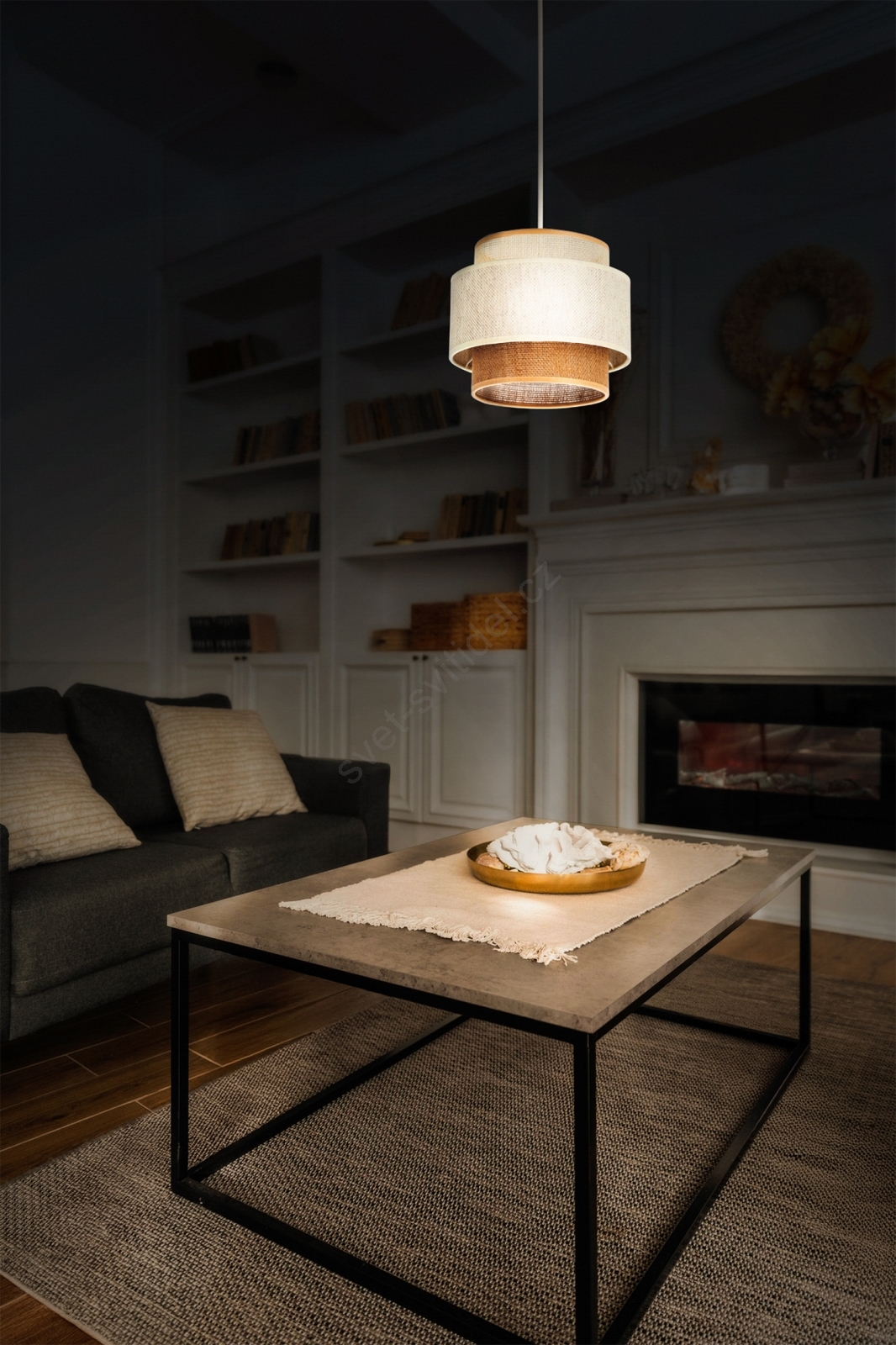 Lustr na lanku BOHO 1xE27/60W/230V pr. 20 cm bílá/juta charakterizuje pěkný design a funkční provedení. Do svítidla je určena žárovka s paticí E27. Zde si můžete koupit další žárovky za výhodnou cenu. Získáte tak zajímavý doplněk do svého domova.