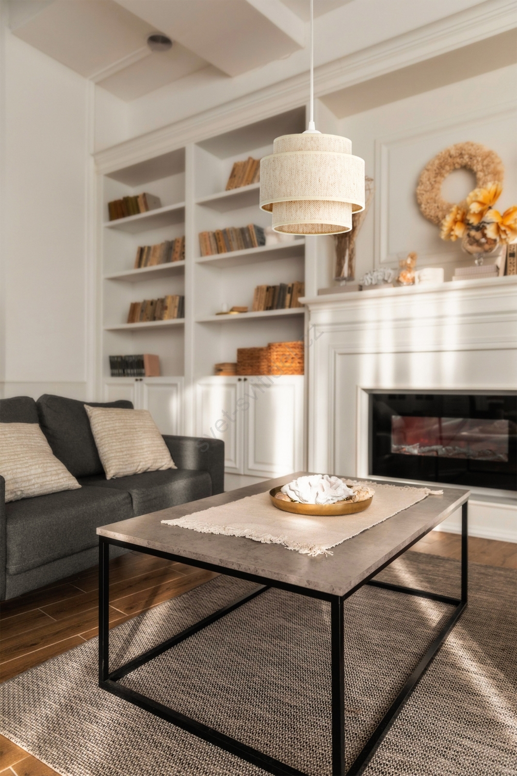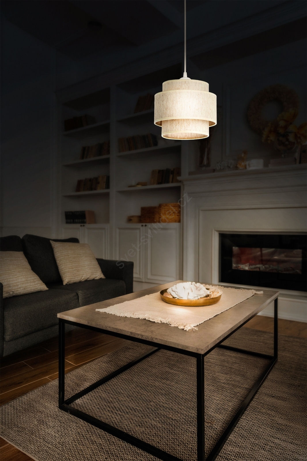 • Lustr na lanku BOHO 1xE27/60W/230V pr. 20 cm bílá/juta