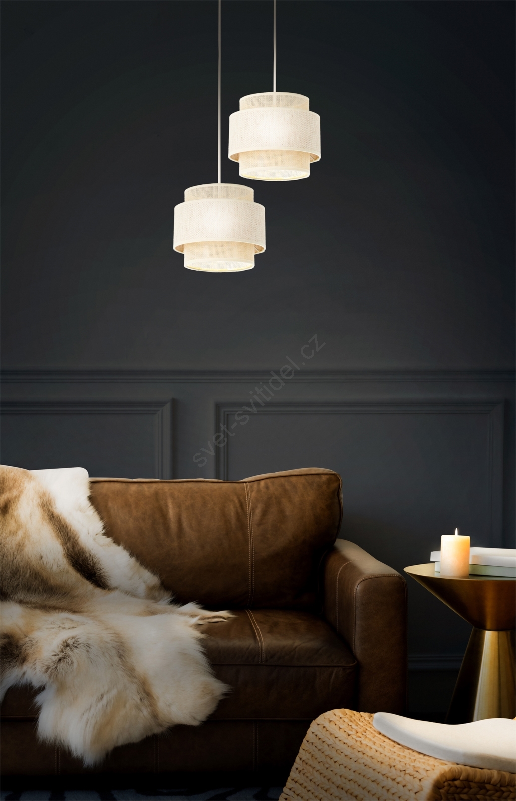 Lustr na lanku BOHO 2xE27/60W/230V krémová/juta charakterizuje pěkný design a funkční provedení. Do svítidla je určena žárovka s paticí E27. Zde si můžete koupit další žárovky za výhodnou cenu. Získáte tak zajímavý doplněk do svého domova.
