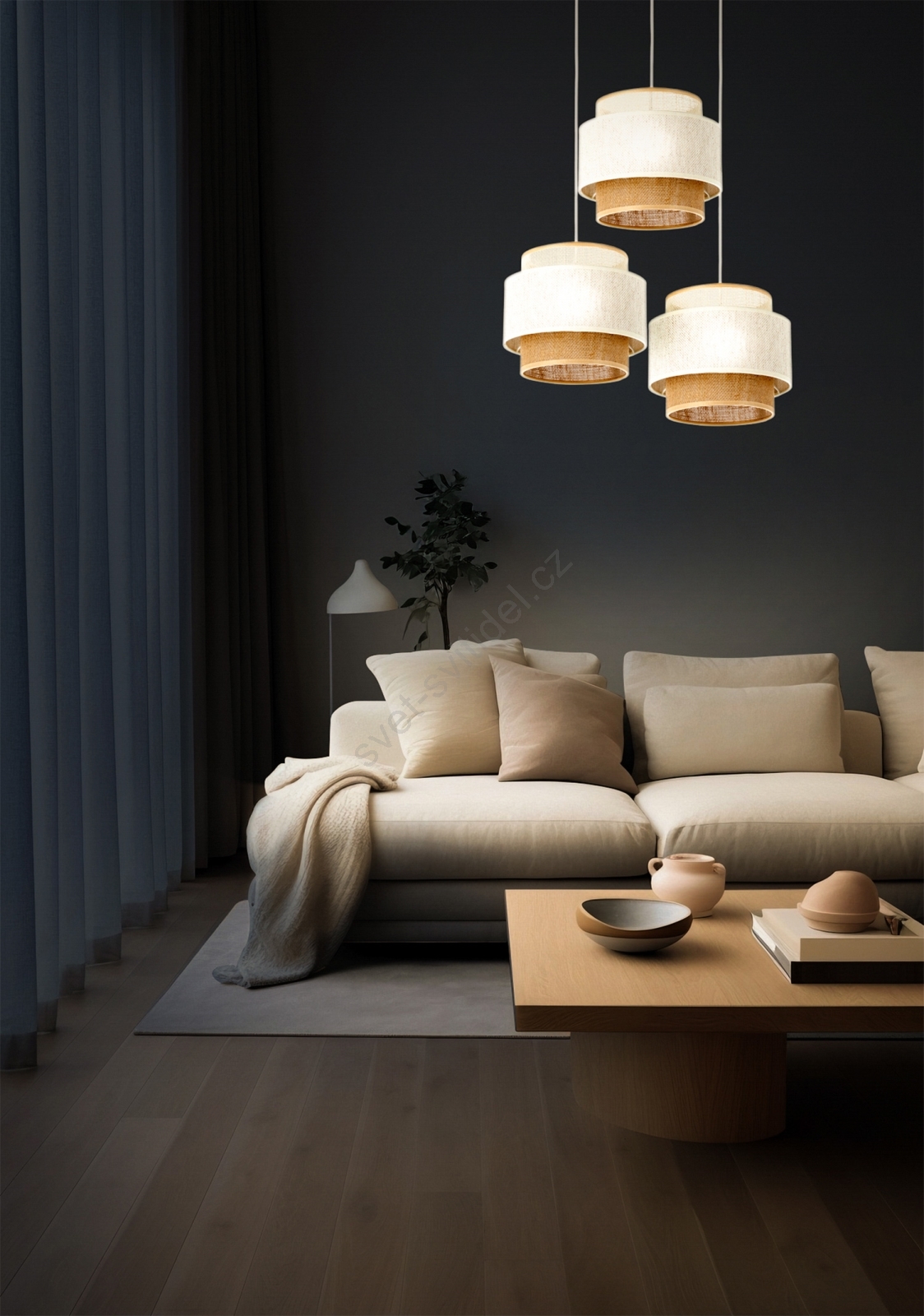 • Lustr na lanku BOHO 3xE27/60W/230V krémová/juta