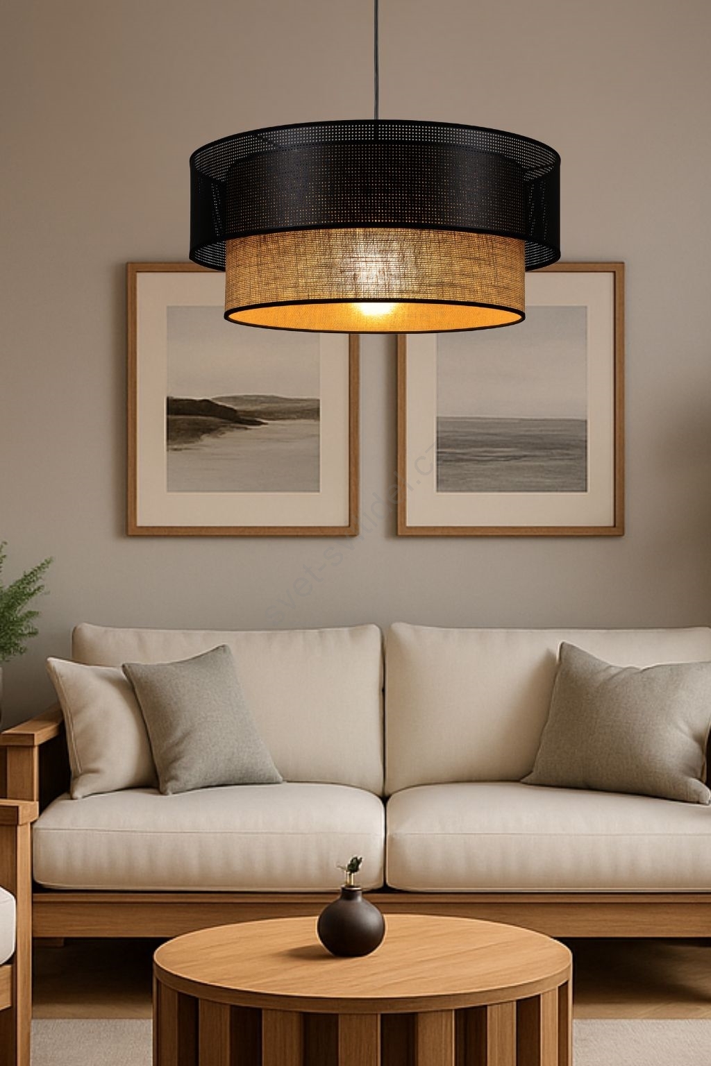• Lustr na lanku BORHO 1xE27/60W/230V černá/juta