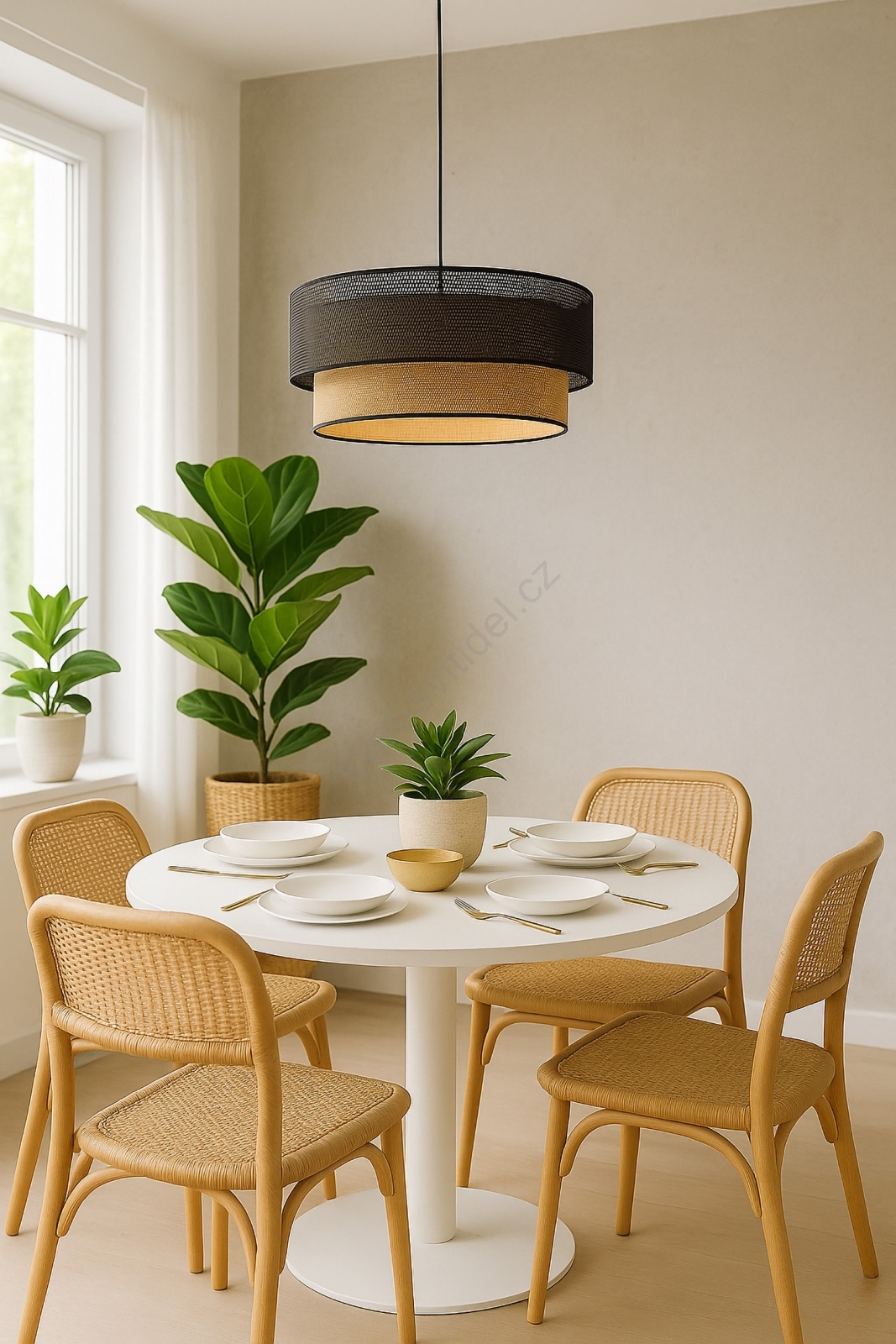 Lustr na lanku BORHO 1xE27/60W/230V černá/juta charakterizuje pěkný design a funkční provedení. Do svítidla je určena žárovka s paticí E27. Zde si můžete koupit další žárovky za výhodnou cenu. Získáte tak zajímavý doplněk do svého domova.
