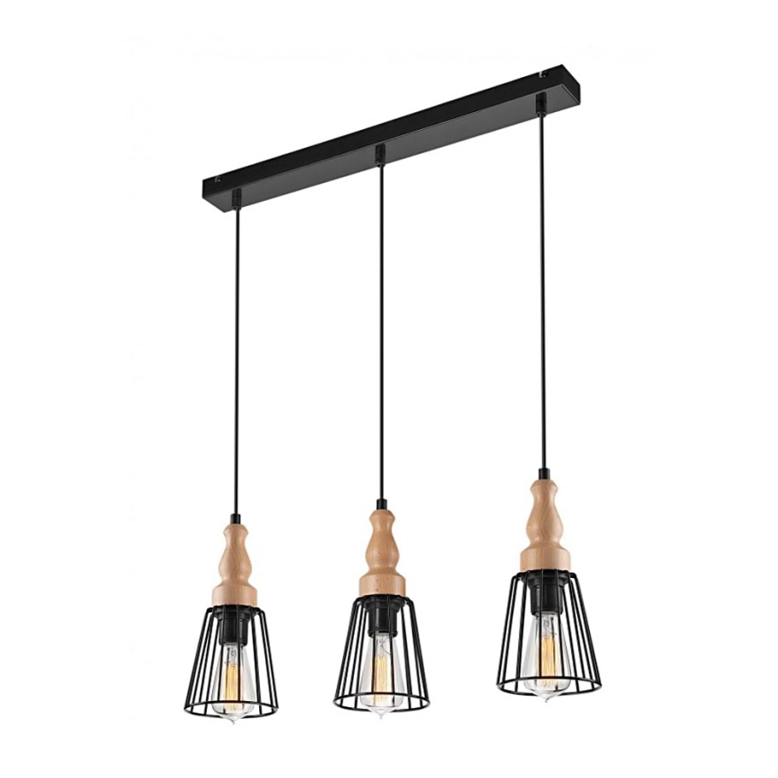 Lustr na lanku INGRID 3xE27/60W/230V černá/buk