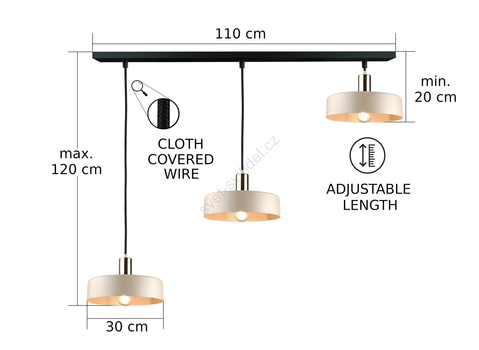 • Lustr na lanku LATTE 3xE27/60W/230V béžová/černá/zlatá