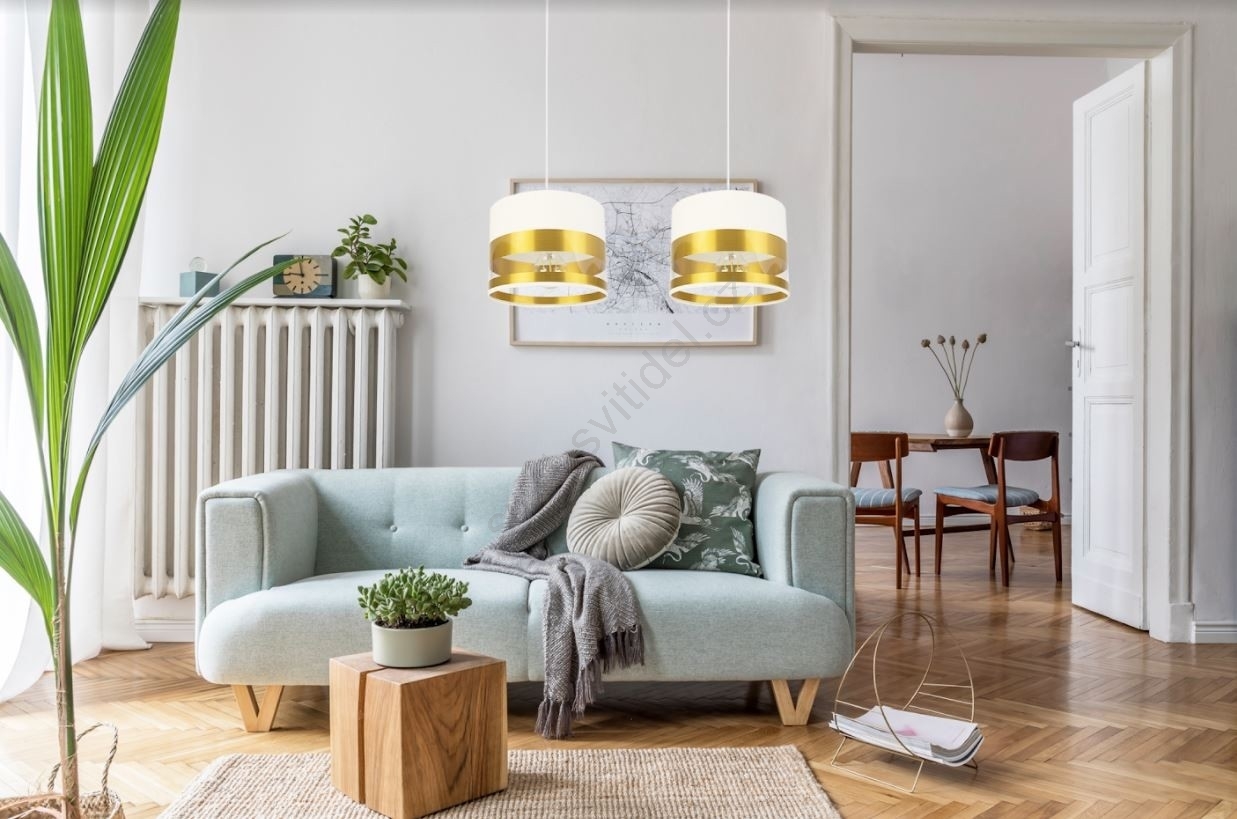 Lustr na lanku MILO 2xE27/60W/230V zlatá charakterizuje pěkný design a funkční provedení. Do svítidla je určena žárovka s paticí E27. Zde si můžete koupit další žárovky za výhodnou cenu. Získáte tak zajímavý doplněk do svého domova.