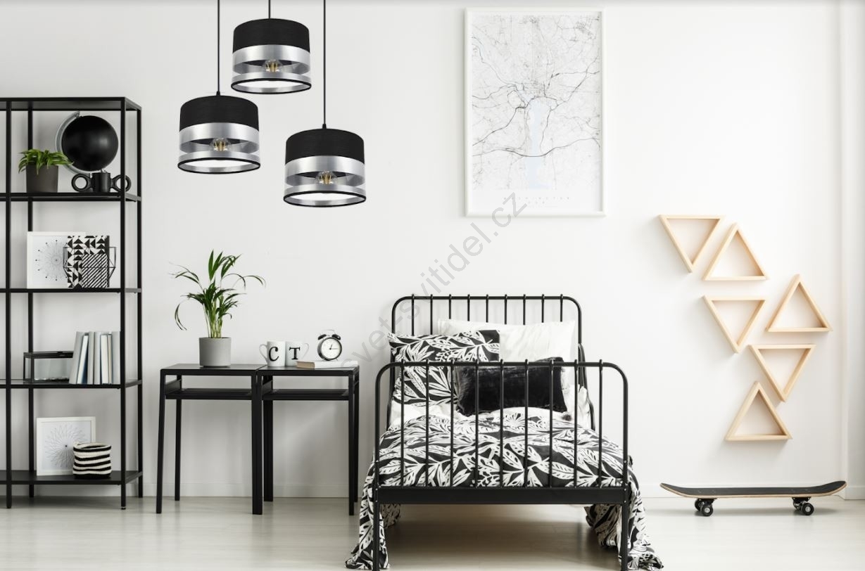 • Lustr na lanku MILO 3xE27/60W/230V stříbrná/černá
