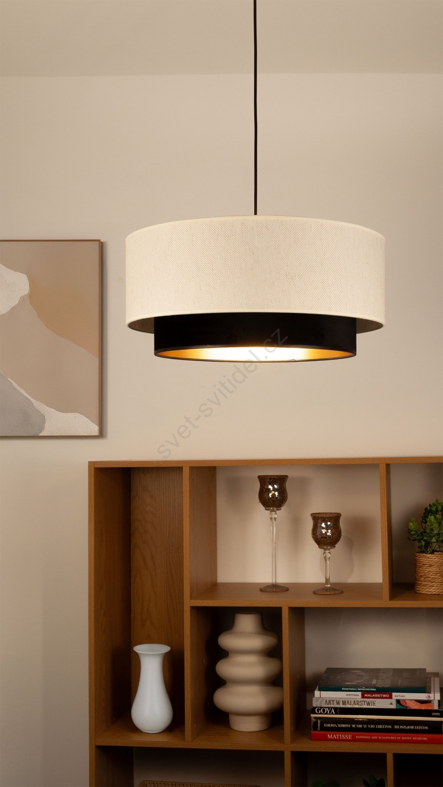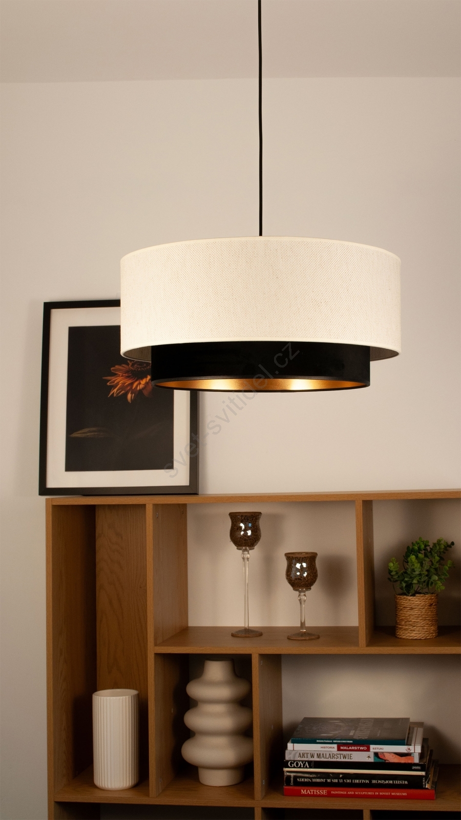 • Lustr na lanku NATIA 1xE27/60W/230V pr. 45 cm bílá/černá