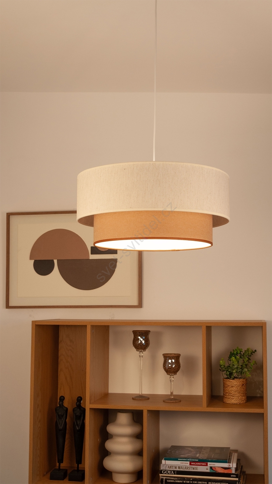 Lustr na lanku NATIA 1xE27/60W/230V pr. 45 cm bílá/hnědá
