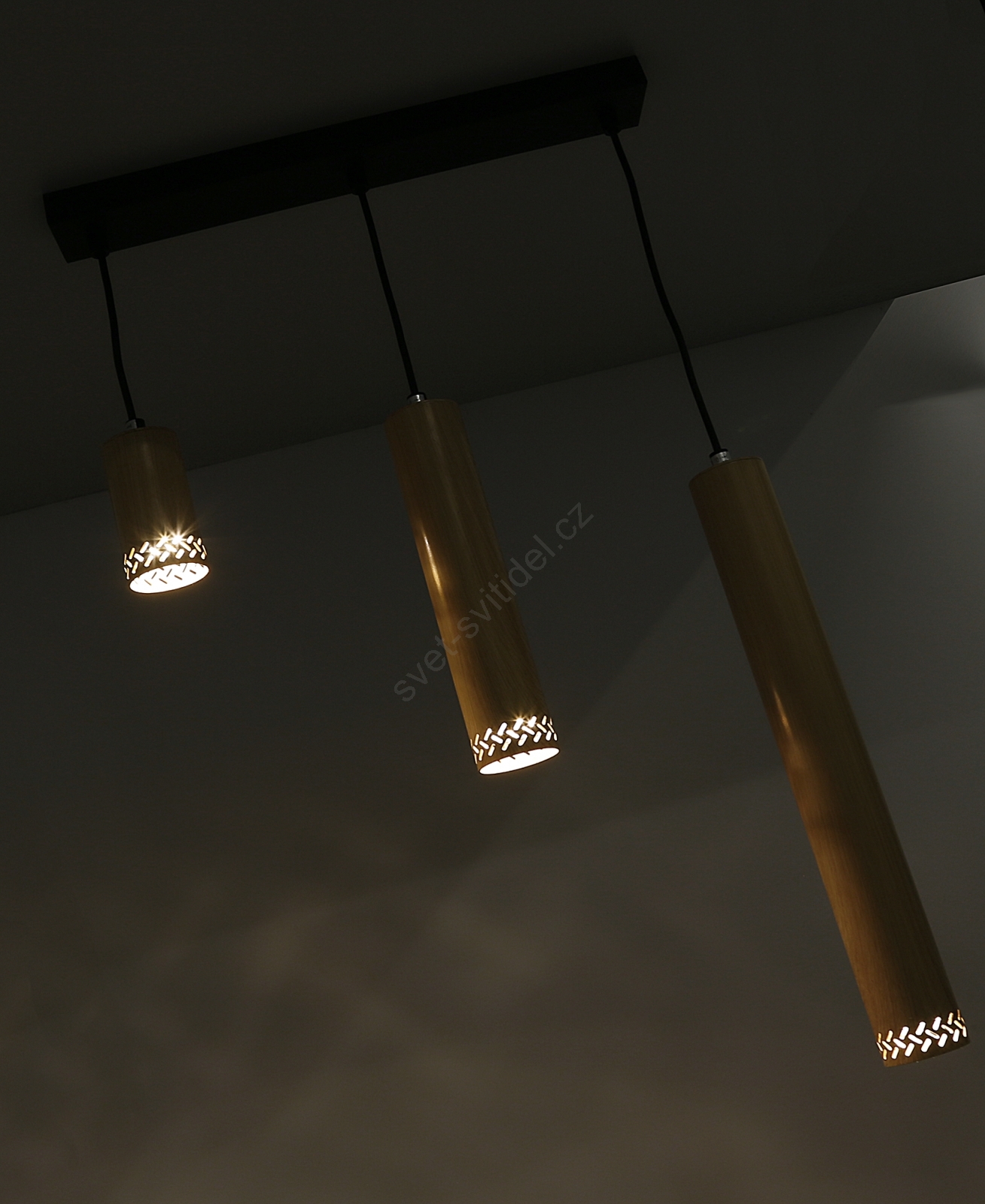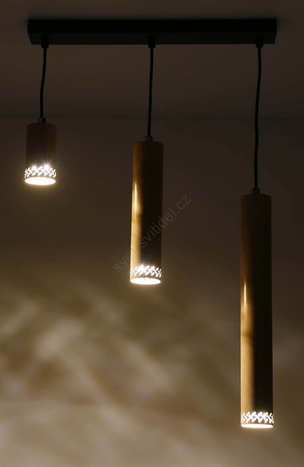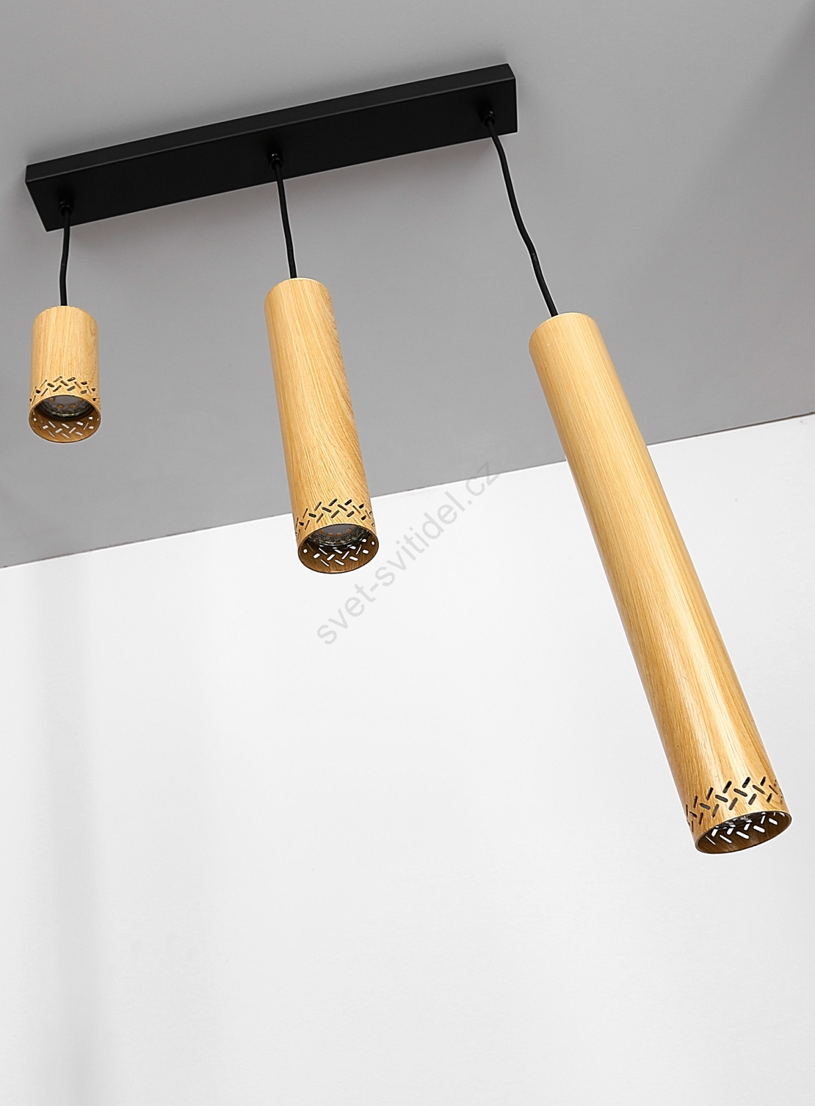 Lustr na lanku TUBO 3xGU10/25W/230V dřevo charakterizuje pěkný design a funkční provedení. Do svítidla je určena žárovka s paticí GU10. Zde si můžete koupit další žárovky za výhodnou cenu. Získáte tak zajímavý doplněk do svého domova.