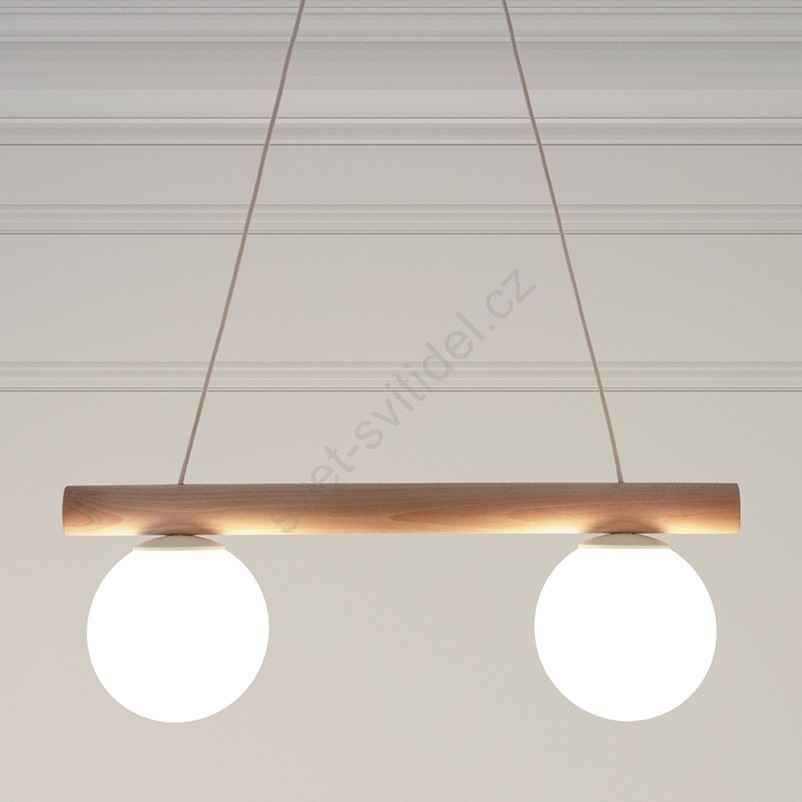 Lustr na lanku WOODSTOCK 2xE27/15W/230V dřevo/krémová