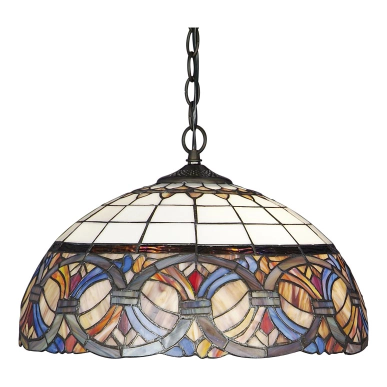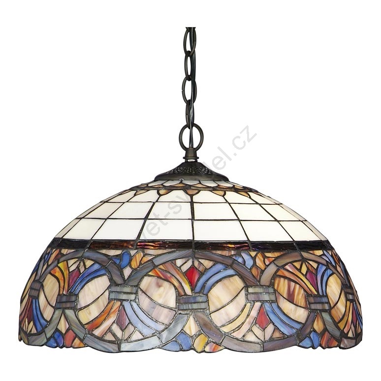 Lustr na řetězu TIFFANY vás naprosto uchvátí. Dokonale a nápaditě provedená vitráž si prostě vynutí pozornost nejen vaši, ale kohokoli kdo vejde do interiéru v němž se bude svítidlo nacházet . Jasné a intenzivní osvětlení interiéru zajišťují dvě žárovky. Svítidlo je nejčastěji využíváno jako lustr do kuchyně, avšak cenné uplatnění najde i v jiných interiérech. Výška svítidla činí 1355mm a šířka 420mm. Žárovky nejsou součástí dodávky.
