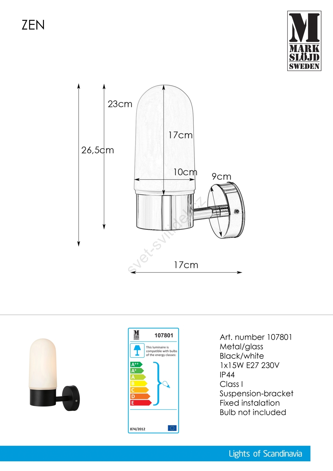 Markslöjd 107801 - Koupelnové nástěnné svítidlo ZEN 1xE27/15W/230V IP44