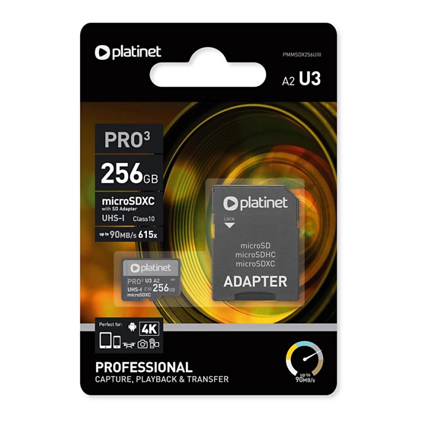 MicroSDXC 256GB U3 Pro A2 90MB/s + SD adaptér