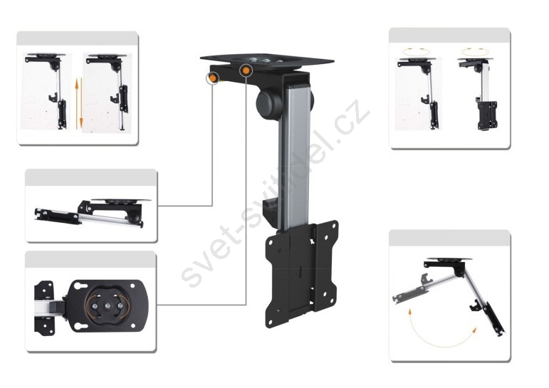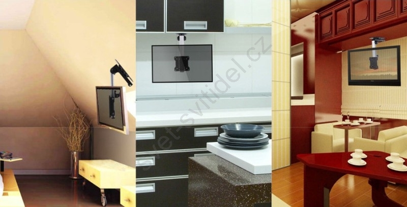 • Sklopný držák na TV je určen pro montáž televize na strop, včetně šikmých stropů v podkrovních místnostech.