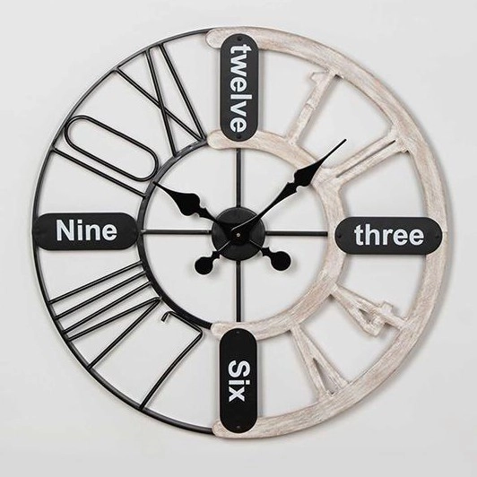 Nástěnné hodiny 1xAA pr. 60 cm černá/bílá patina