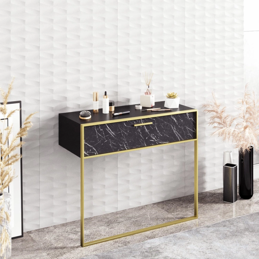 Konzolový nástěnný stolek POLKA 76,8x90 cm zlatá/černá
