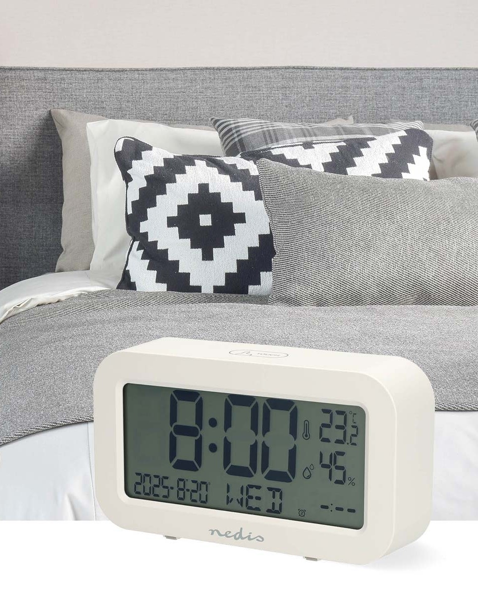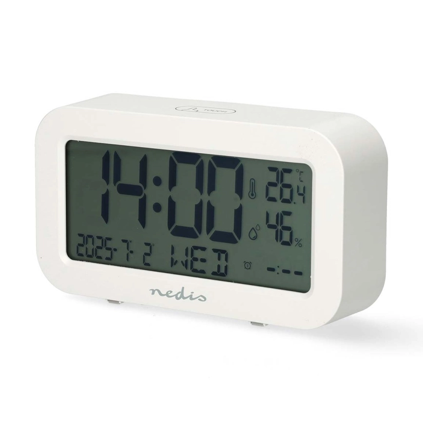 Digitální hodiny s budíkem, teploměrem a vlhkoměrem 2xAA bílá