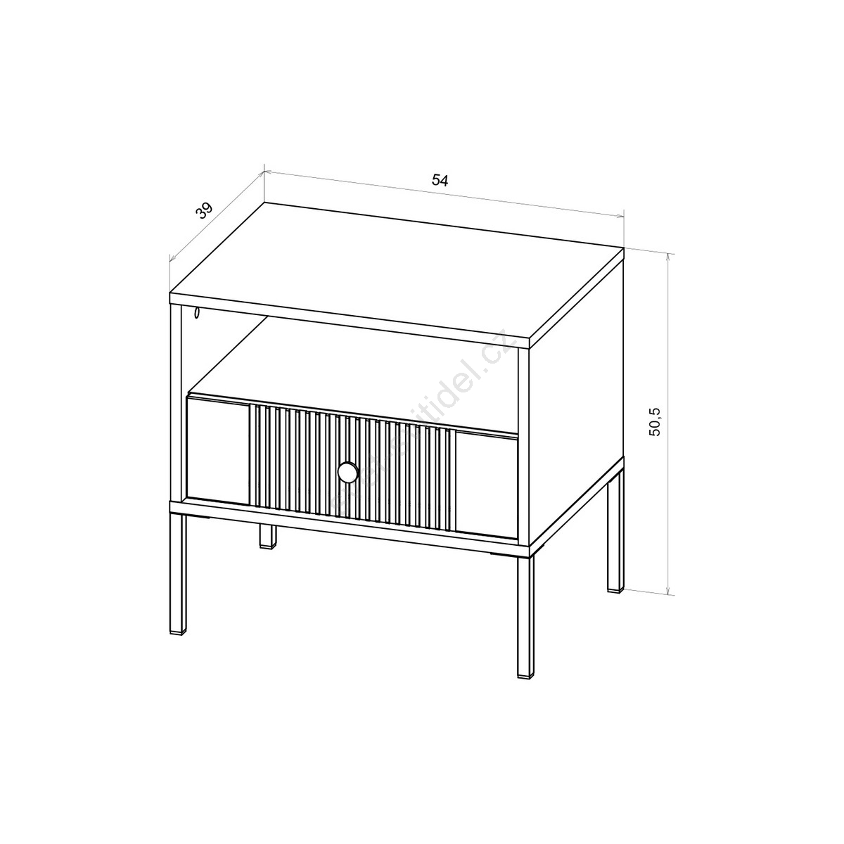 • Má jednu otevřenou poličku a jednu zásuvku zdobenou vertikálním žebrováním pro rafinovaný vizuální efekt.