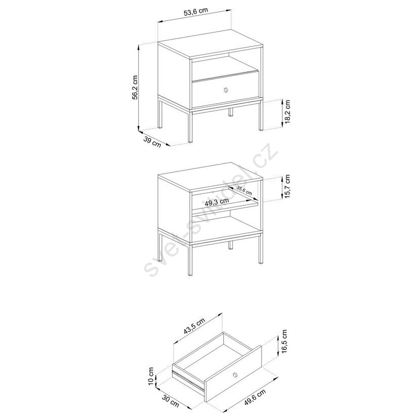 • Noční stolek NOVA 56x54 cm bílá/černá